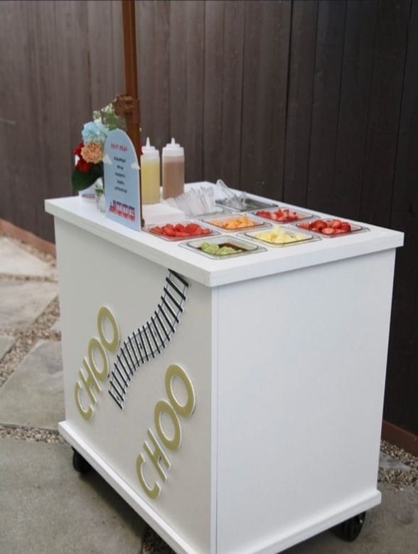 Su diseño tipo vintage un toque distintivo y estético, incluye compartimientos y recipientes a la medida que permite distribuir los toppings perfectamente para barra snacks.